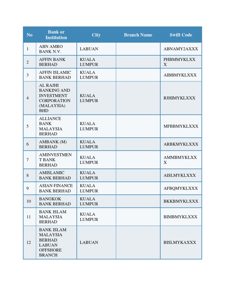 All Malaysia Bank Swift Code Full List Any City Maomaochia